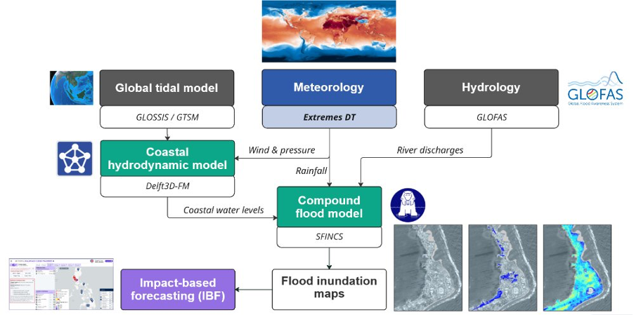 Figure 2 Compound flood forecasting and early warning workflow for Philippines pilot service
