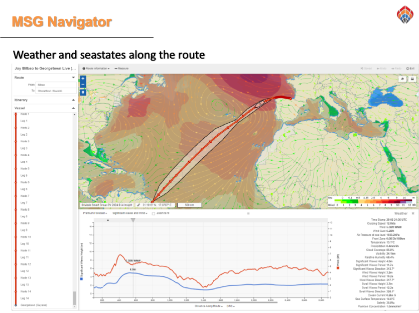 Figure 3 Optimised shipping routes provided by MSG Navigator